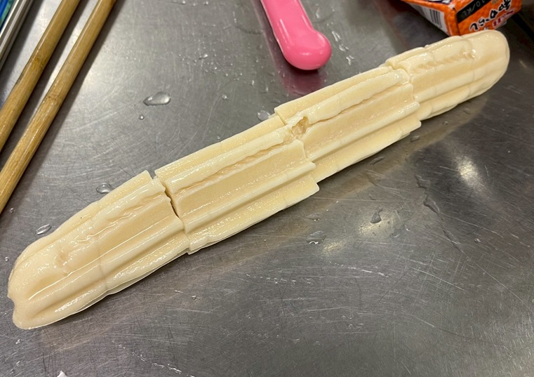おでんの具 「ちくわぶ」を作りました! 2025年12月3日 最終更新日時 : 2025年12月3日 yamada23475 武蔵野手打ちうどん保存普及会の飯田さんが「ちくわぶ」を作りました!ちくわぶは、小麦と塩水を練って棒状にしたもので、主に東京を中心とした関東地方で食べられるおでんの具です。断面がミルフィーユ状になるように巻いて作ると、汁が染み込みやすくなります。抜きやすいように金属棒に巻くのがコツです。 \ 最新情報をチェック / FacebookXBlueskyHatenaCopy